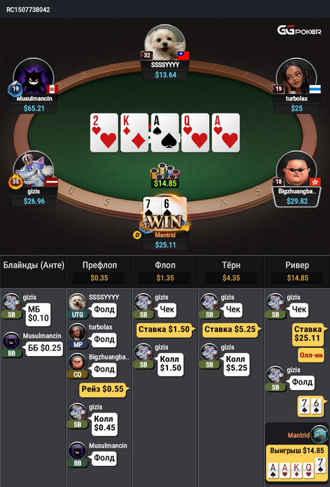 У нас тут есть пуш на велью ривером ? Я конечно чек-пас не планировал играть ,думал попробовать ,блыфы по ловить ,по сути из адекватных рук AQ возможно нам оплатит ривер
