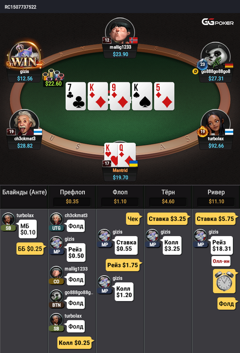 Всегда легкий колл ? Както крайне на QJ было похоже ,блеф странный ,помоему слишком хорошая рука ,чтоб не в блеф превратить у оппонента