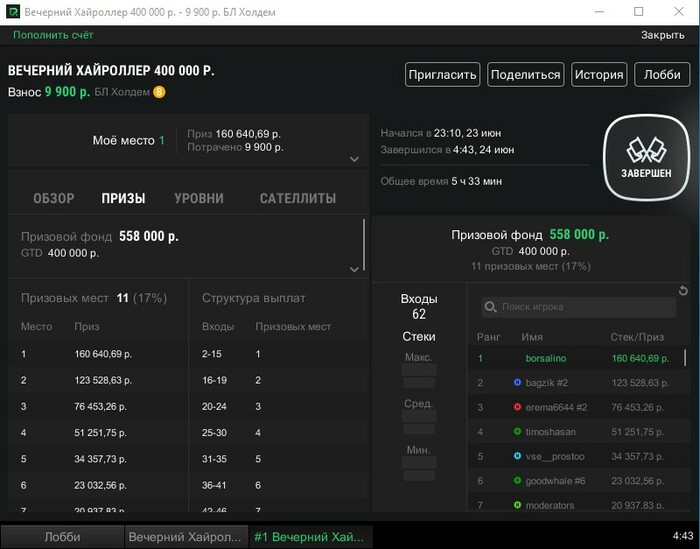 Пока самое интересное за сегодняшний день) С вчерашнего билета (который выпал в мистери Омахе) получилось залезть в призы)