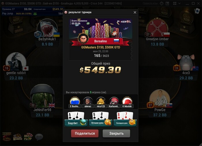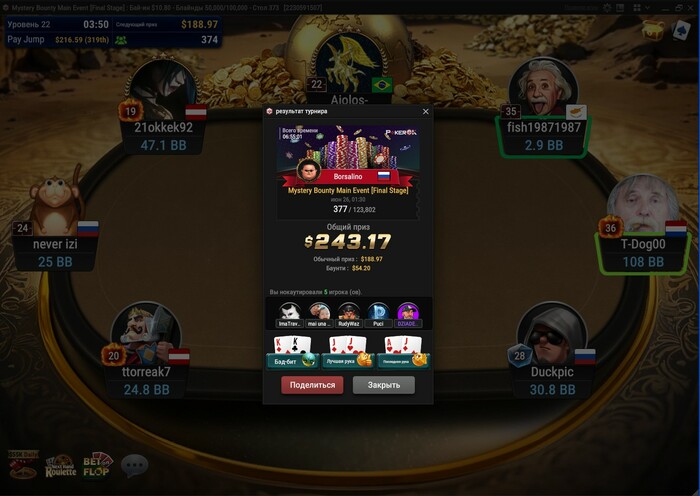 В Мистери довольно далеко прошёл, GG отыграл+550$