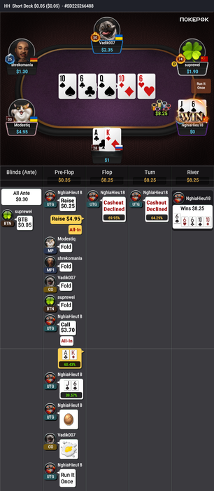 Уебаны просто слили меня на хорошей карте. Каждый день часть самых топовых рук была в серьезном минусе. И блять Туз король масть в минусе на 20000 рук. Эти говноеды просто решили, что будут всем рисовать что хотят. Никакого отношения к покеру это не имеет.