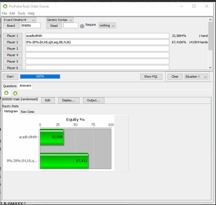 zloy20, Когда я нажимаю кнопку аллын ( потбет ) и на его пуш будут играть колл . Если ты про то , что ренж его пуша будет слабее чем я записал , то он ьбудет слабее буквальнона 10-15к комб и при этом мое эквити уменьшится буквально на 2-3% . Я просто упростил расчеты с условием того , что допихаю любой терн. ПОтому что посчитать терн и ривер практически нереально.