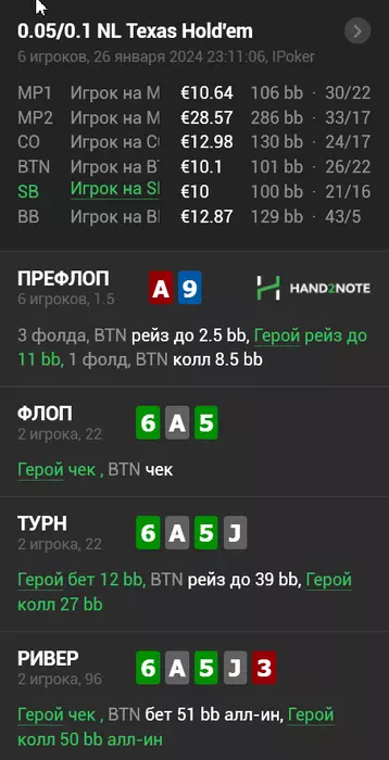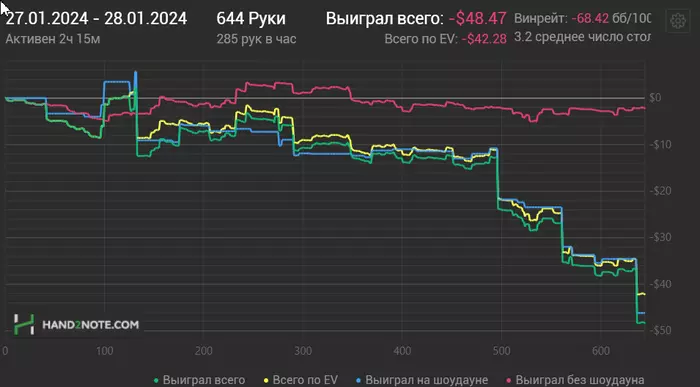 Как вы считаете, стоит ли в подобных спотах отбивать випа? ШБ выглядят безумно привлекательными, но у оппонента вот такая статистика + нотс на то, что он жуткий телефон и несколько раз зачекивал в пассивную линию ТПТК.