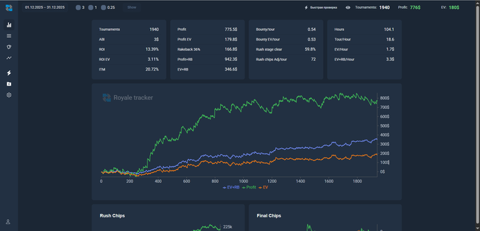 Омаха отошла на второй план, играю в MBR. За декабрь статы пока вот такие. Игрой очень доволен, Mystery battle royale стали любимой дисциплиной. Благодарен Косте и Кириллу, что рассказали про них и заманили!
