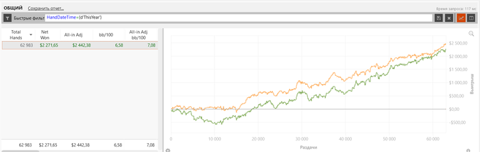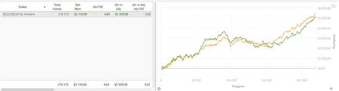 в этом году пока иду хорошо по кассе со всеми бонусами +3525, дистанции как обычно никакая, но так в жизни много прикольных вещей которые отвлекают... нл 50 уже стал самым наигранным лимитом почти 220к рук. Пора уже наверное 100 начинать добавлять