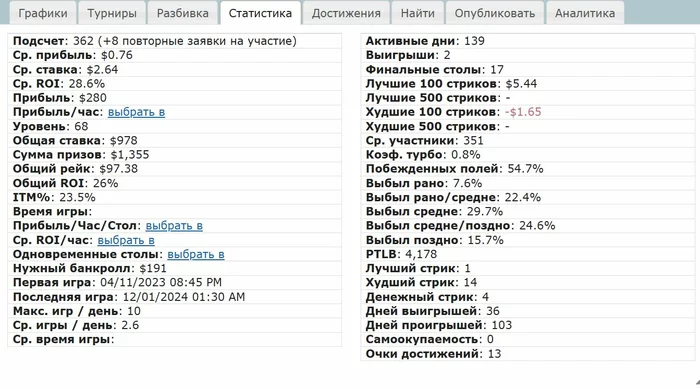 Сам играю со статами ТАГа из 2010го что-то около 23/18/8 и норм, просто много подстроек под конкретных игроков, а в остальном олдскульный стайл. Ну а дисперсия... Так она всегда в МТТ была большой, хоть 15 лет назад, хоть сейчас, без дисперсии только на заводе и то не факт.