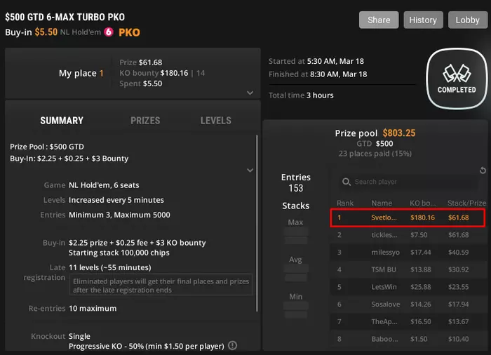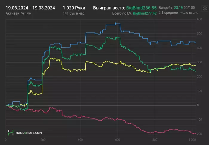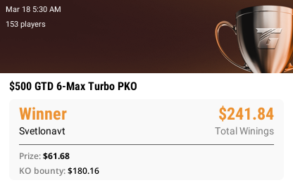 А еще случайно запрыгнула в турнир за 10 евро и вылетела до призов... Была уверенна, что он за 5. Нужно становиться еще внимательнее
