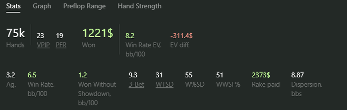 По итогу рейк = 12.5бб/100. А мой винрейт ниже на 2бб/100.