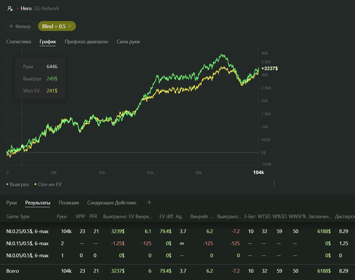 ГГ остается пока что, как внеплановая игра. И я в любом случаи понимаю, что имею перевес, и что могу делать свой $/h. Так же я вижу, как люди имеют не плохой $/h на лимитах 100-200 играя ГГ. Все реально. То что он не такой крутой, как хотелось бы, ну в этом плане да, такое себе.