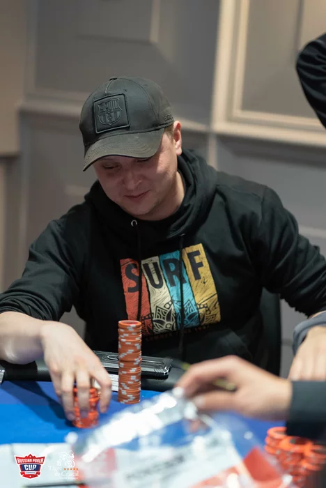 Турнир продолжится завтра в 21:00 на блайндах 5,000/10,000/10,000. Средний стек — 420,000 (42 bb).