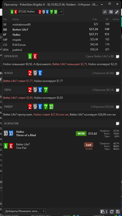 Тут я конечно специально чекал ривер чтоб кармашка запушила, но не которая доедет блин.