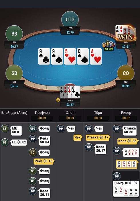 4) фолд префлоп, ну доехало оппу, обычная история.