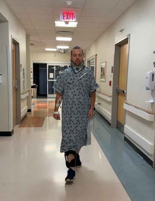 Нейрохирург тоже не запретил: шея хорошо зафиксирована — винты + воротник, всё держится.
