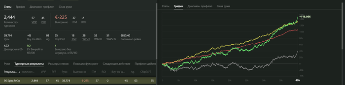 nitrofewf, Я понимал что лишний стол это будет больно.... Но надо двигаться вперёд через боль и страдания.... Походу у меня другого пути нет... Ну и 50 фишек это вообще не винрейт это игра в ноль на виномакс без учёта рейка)))