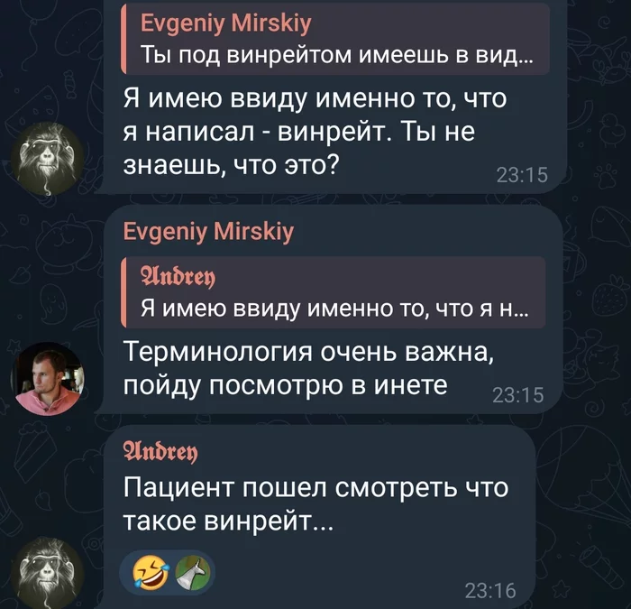 Завидуй_мне, а ты говоришь терминология. Мы не можем договориться вот на таком уровне. Но при этом, под моими сообщениями игроки ставят минусы, хотя пока что не поняли, о чем я сказал. Насколько это разумно? Может быть нужно сначала разобраться, что за материал.