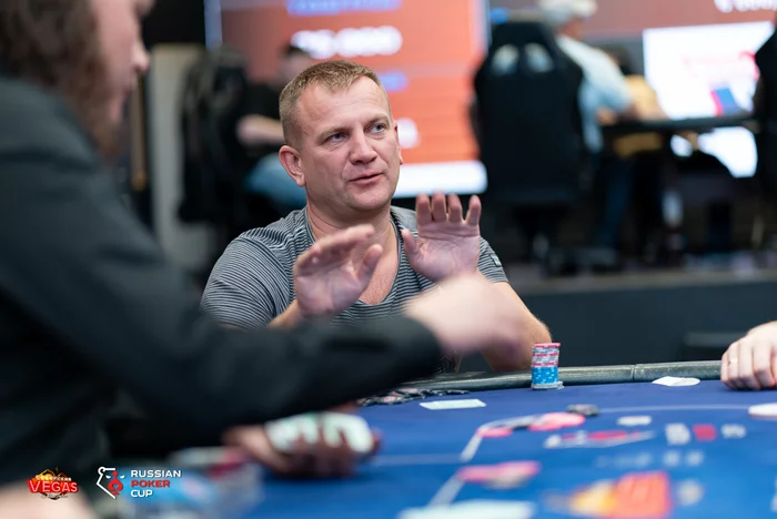 За соседними столами всех фишек лишились Вадим Данилов, Евгений Ольвинский и Павел Кузнецов. Осталось четыре полных стола.