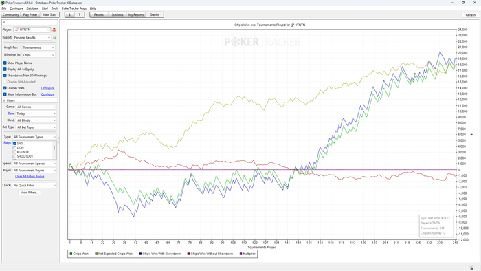 Еще из хороших новостей, активировалась подписка на визард, теперь наконец начну заниматься теорией. Общее чипев на тройках за месяц 38, что прям очень плохо, в декабре + январе у меня было чипев 44, сейчас видимо играю хуже. Начну прям плотно сидеть в визарде с понедельника, сегодня поиграю 300 - 400 туриков, а завтра есть дела, если и получится поиграть, то только поздно вечером. Радует, что наконец попал в апстрик в спинах, надеюсь он продлится еще хотя бы несколько дней.