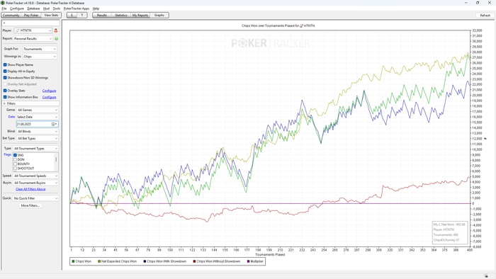 Давно у меня не было такой высокой красной и это прям радует. Вчера перед сном посидел еще часик, поставил фильтр на мои фолды по риверу в трекере и поразбирал раздачи. Более менее у меня с этим все норм, но периодически телефонюсь по терну и колю лишнее, будем это исправлять. Пока что играю немного, навалилось очень много дел и личных проблем, надеюсь к концу недели разгружусь и буду стабильно играть по 400+.