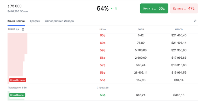Это отвечая на твой вопрос зачем мне ликвидность. Именно за этим. Потому что люди на Polymarkete неправильно оценивают вероятности. Тем более какие-то трейдеры-любители. Собственно, в этом и заключается моя главная идея. Прав ли я увидим.