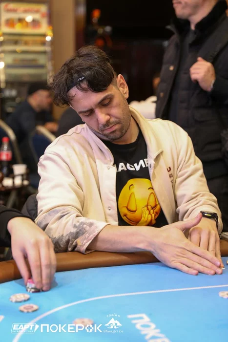 Стол 10. Tigran Ambartsumian (175,000) проиграл монетку Maziyar Bayati (100,000): < . Туз на флопе.