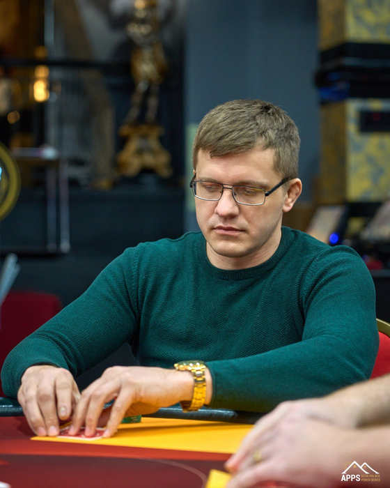 Съ нiмъ остался играть Михаилъ Бутырiнъ (120К) на большомъ блайндѣ съ .