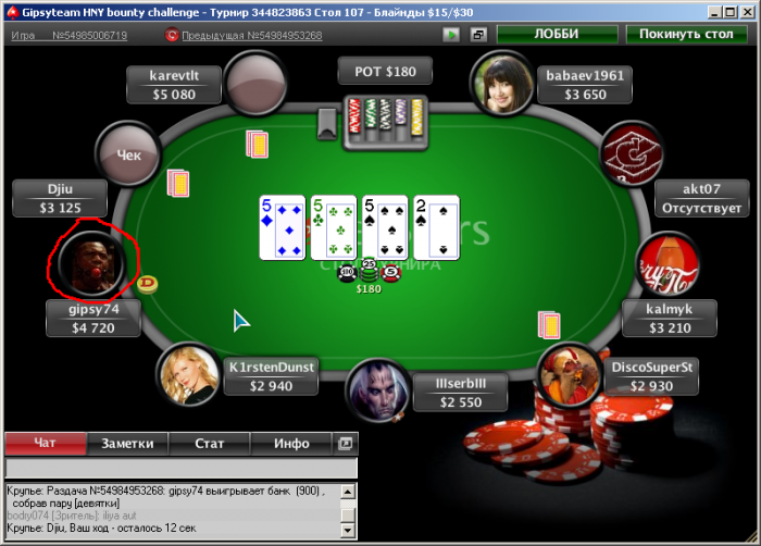 Poker Stars $5.00+$0.50 No Limit Hold'em Tournament - t25/t50 Blinds - 8 players -