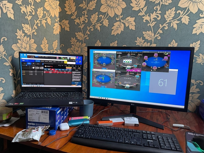 Мой сетап: Ноутбук Lenovo legion 5 17, Монитор LG 27QN600-B, мышь Logitech G305, стол с подъемным механизмом. И ,конечно же, главные витамины для покериста : Магний, Б группа и D3.