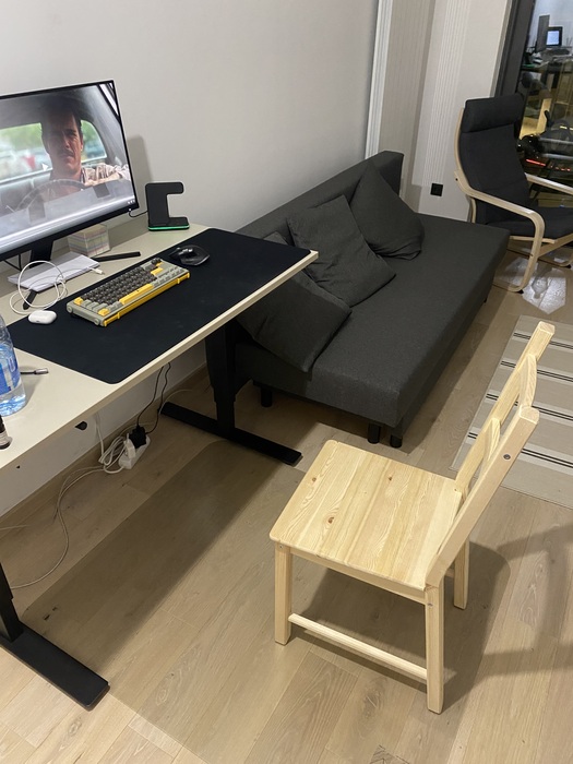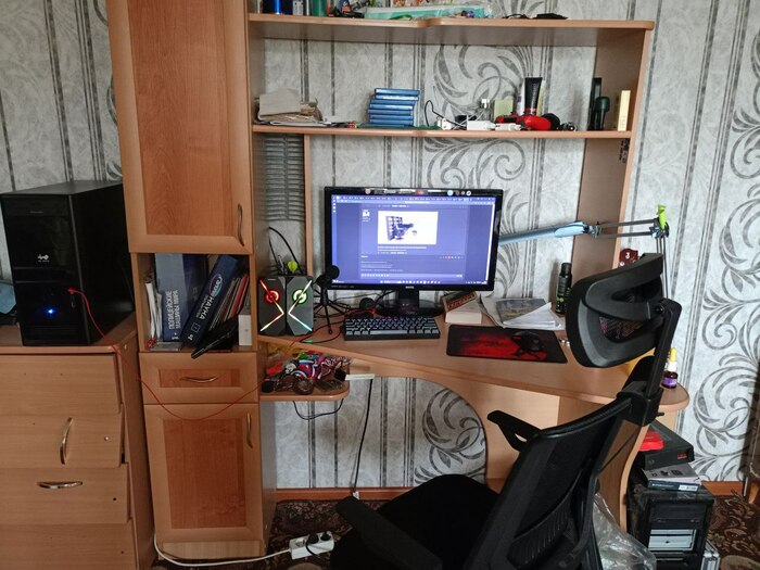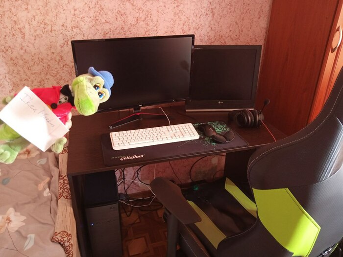 Решил что нужно вкладываться в рабочее место, но с женой постоянно трения по этому поводу, даже из-за подушечки для мышки😂 Сейчас план - тратить на рабочее место включая железо 5% с кэшаутов, жалею что раньше до этого не додумался. Пока-что так. Кресло по глупости заказывал в интернете, красивое, но неудобное, спина болит😭 На счёт страшного монитора, жена дала добро на замену старого с отломанной подставкой, а вот по поводу кресла..... купил, сиди😭