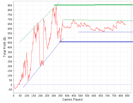 Начнем с того, что троллить начинаешь ты, голословно заявляя здесь про Википедию. Во-вторых я попросил адептов конкретно пояснить их виденье, каким образом это увязано с покером, если есть 3-е лицо в виде ГСЧ. Иначе говоря, если ты можешь спрогнозировать ход графика, ты в изрядной степени прогнозируешь ГСЧ, потому как зависимость от него оч весомая. След-но ГСЧ в этой модели предсказуем (читай подкручен). В противном случае все твои прогнозы пальцем в небо, поскольку если ты мне рисуешь путь наверх, а меня накрывает дождь из кулеров и бэдбитов, то я лечу вниз. А т.к. постулируется случайность ГСЧ, то ты ни коим образом не можешь заявить о том, что этого дауна у меня быть не может, посольку тебе твой анализ говорит обратное.