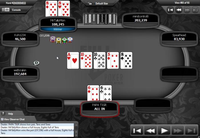 UTG (t1910) UTG+1 (t4930) MP1 (t1120) MP2 (t6625) CO (t7940) PAPA TIGR (Button) (t3525) SB (t5165) BB (t875)