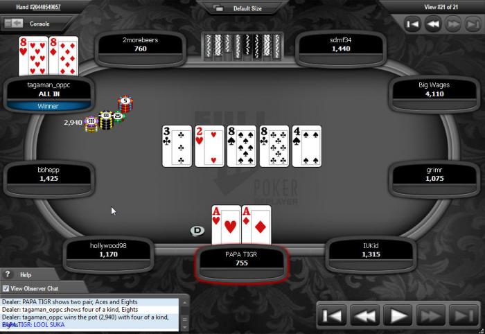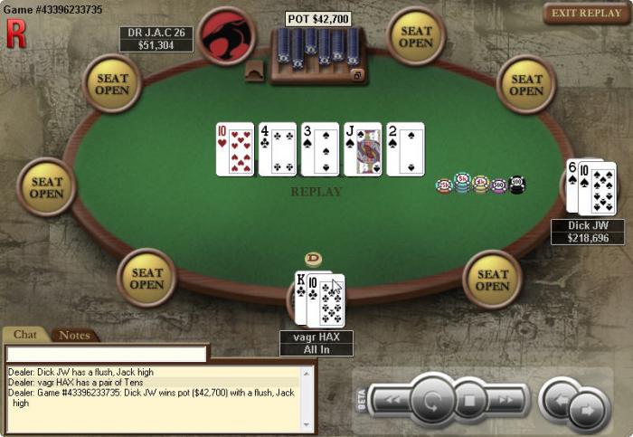 не могу найти в ХХ((, там была такая херь: до меня все пас,я с катоффа с 9М АКs рейз 2x(надо было пушить мля),коротыш SB рирейз allin - 77,BB колл 72,я ририрейз allin ,BB -баран колл - ловит двойку и чао