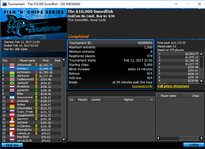 Сегодня отыграл небольшую дневную сессию, вылетел 14-ым в 44 дип стеке с АА, в топ 25 16 бига AQ<AT за 2 стек и доехал до второго в 11 билдере, где фиша в год моде было не одолеть обв, через час где то запускаю вторую часть сессии