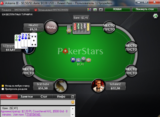Аут WS 27/269 ... лучшая рука за последние 30 минут! Дали аж $100.87 )))