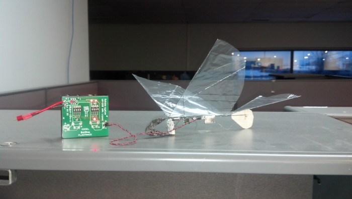на 7000 оборотов в минуту.На команды оператора БПЛА откликаются при помощи системы управления полетом массойтри грамма.Крылья "бабочки" сделаны вручную из