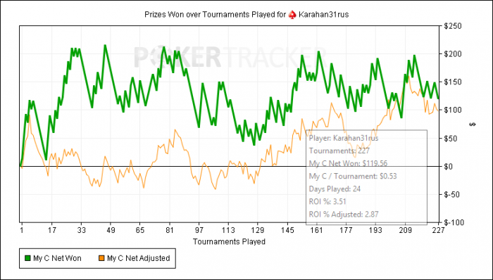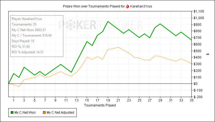 Профит: +160$Времени было играть не много, в целом не плохо отыграл. Почти нажал фолд на тёрне в этой раздачи..