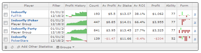 Итак, в 2013 году я сыграл 1,620 турниров онлайн с ABI $13.4 и ROI 37.5%. Общий профит по всем румам $8,138.