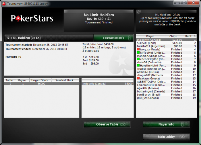 Планы на 2014 пока строить не буду. До конца году турики играть не буду. Хочу усвоить все, что дал Жан и откатать 20К+ рук на НЛ25. Еще предстоит пара выездов в оффлайн, отчет позже.