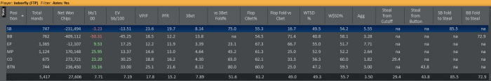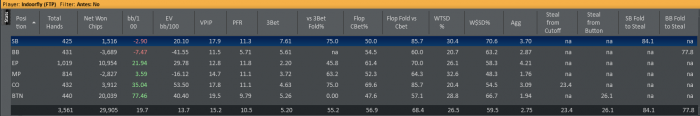 Итак, для начала ФТП, лимиты 26+. Под конец года ФТП стал моим основным румом. На лимитах 26 и 44 сыграл 65 туриков. Винрейты По позициям, уровни без анте По позициям, уровни с анте По размеру стека, уровни с анте