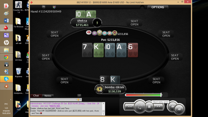 Сегодня случился день, когда я по времени никак не успею откатать сотку, и все же несколько часов для игры у меня есть. В такие дни, я пожалуй, буду играть один стол на лимите повыше, и потом разбирать игру.