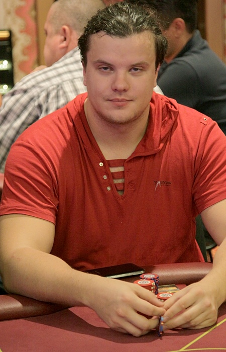 Сперва он не выиграл с против - дилер положил общие две пары, дележка. В следующей раздаче перед ним коротыш поставил олл-ин 25К на . Топчий - колл с . Семерка на доске, - и остались слезы. И тут же с тем же оппонентом < ! Сергей поймал короля... а соперник - жалкие . Супер-каре ;)