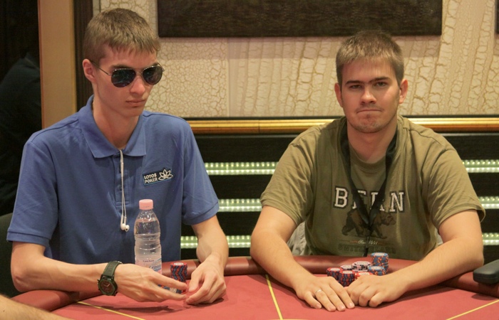 А вот и братья-близнецы Дмитрий Семенов (58,400) и Артем Петриченко (87,900) - вот уже третий турнир подряд оказывающиеся рядом друг с другом, причем их рассадка чередуется - то москвич имеет позицию на чебоксарца, то наоборот...