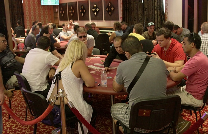 Впервые в Main Event задействованы восемь столов, благо никто не рвется в три часа дня играть в кэш ;)