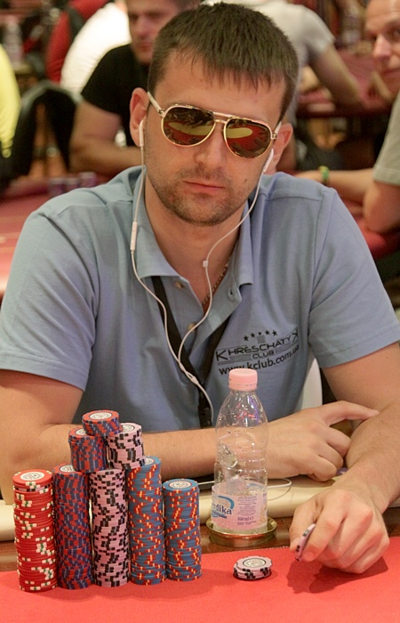 Раздача №2. Еще один болгарский игрок решил испытать удачу, встретив рэйз Подзолкина с с ранней позиции (3,400) 3-бетом с ББ - 8,900. Колл. На флопе он поставил 11,000, украинец перевернул до 23,500. Болгарин задумался, и поставил олл-ин. У Антона не было причин сбрасывать, и он сказал колл. Там . Терн и ривер сопернику не помогли.