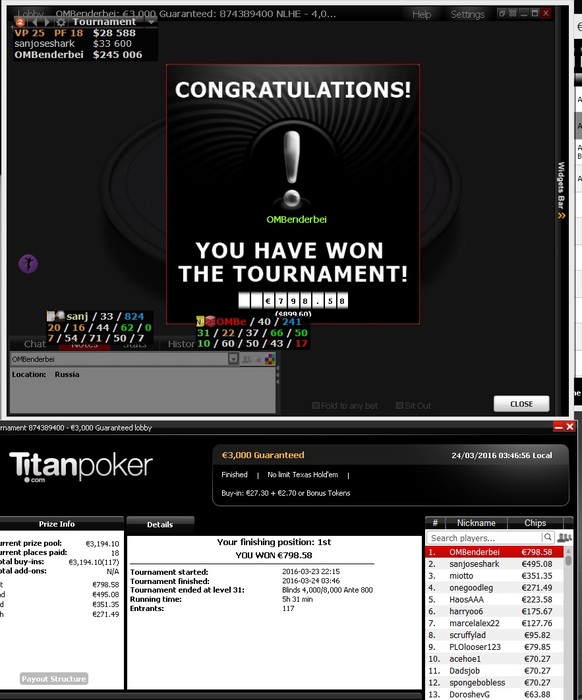 , потому как сыграл как идиот, залез коротышом в раздачу с совсем коротышом, поймал оесд. Дро не закрыли, коротышу на ривере флеш раздали. На второй маленькой финалке на Титане QQ<KK, 5 место и вот ещё