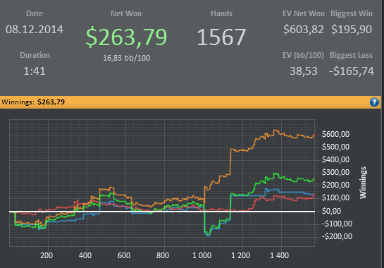 Final Pot: $208.30 fin shows three of a kind, Kings