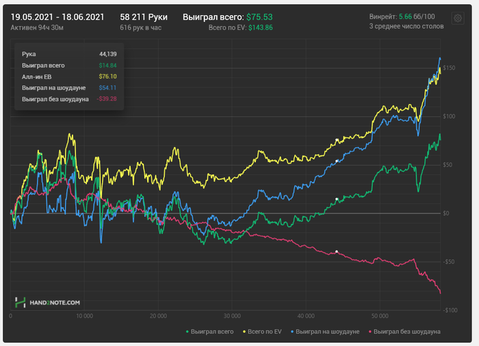 Преврал я с количеством рук ,которые наиграл. Правильнее было бы сказать :" у меня случился недобор в 160 долларов на дистанции 30к рук. Это граф старзы