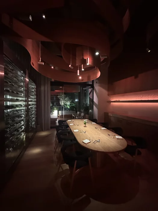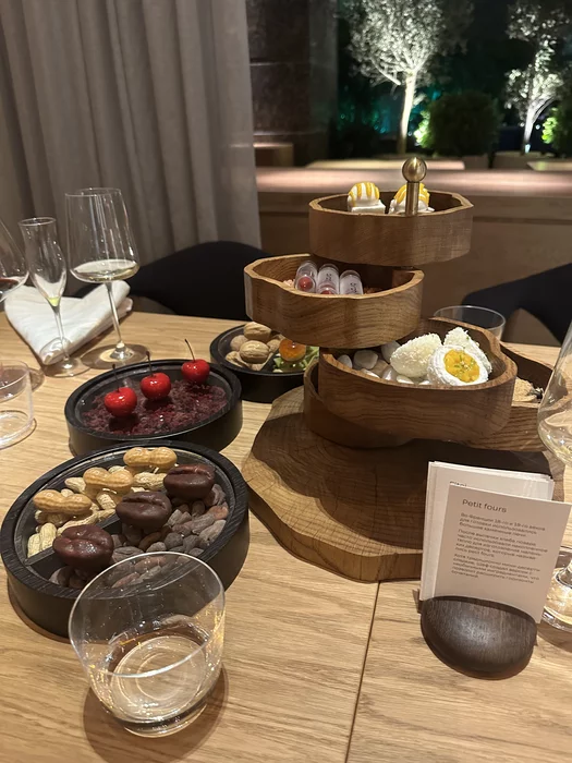 Однозначно рекомендую. Находится, кстати, в Ритц Картлон. Очень много общались с официантами, все питерские. Сделали нам небольшую экскурсию по помещению. Готовилась к открытию команда два года. Шеф находится сейчас чаще здесь чем в Питере. Несколько раз выходил к нам, сам подавал и объяснял некоторые блюда.