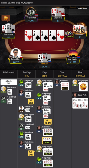 Хохо парниши-))🔥 Вчера первый раз за все время на PLO1000 был еще один фиш за столом кроме меня-)))) Удалось выиграть банk префлоп более 450 бб, счастье то какое-) с WPN деньги так и не пришли, саппорт пишет, что ВИИДИМ ваш вывод, но ждите, только я не понимаю почему я должен ждать?