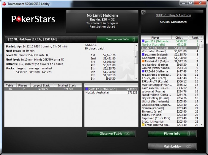 Причём был полнейший зоопарк, народ улетал только так по тп или второй паре. Была ещё куча раздач как выше, адекватов за моим столом 1-2 было. Оч обидно с такого лейта улетать (