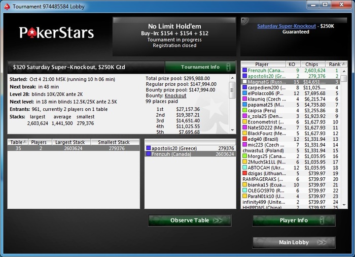 На последние 300 баксов сыграл несколько турниров, думал завтра пойду кредит пытаться взять))) Кстати, такой финалки слабой я на лимите 10 долларов даже не видел...